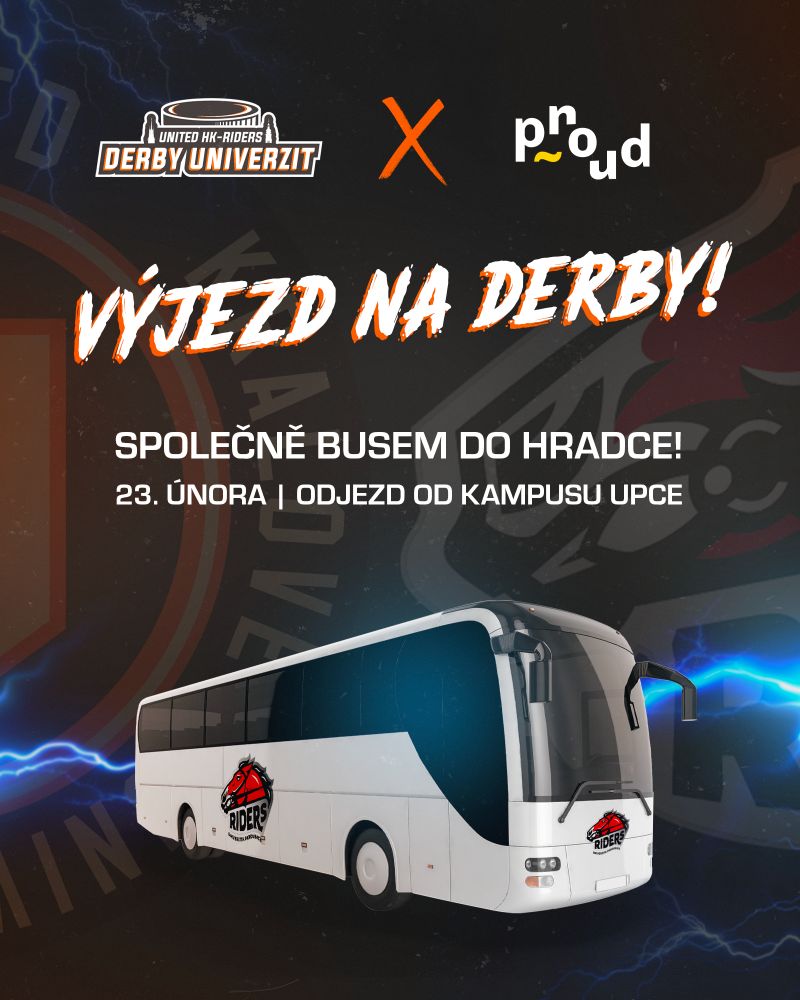 Na Východočeské derby univerzit do Hradce vyráží Riders Pardubice busem přímo od kampusu UPCE. Pohodová cesta, pivo Proud a velký hokejový zážitek na jednom místě.